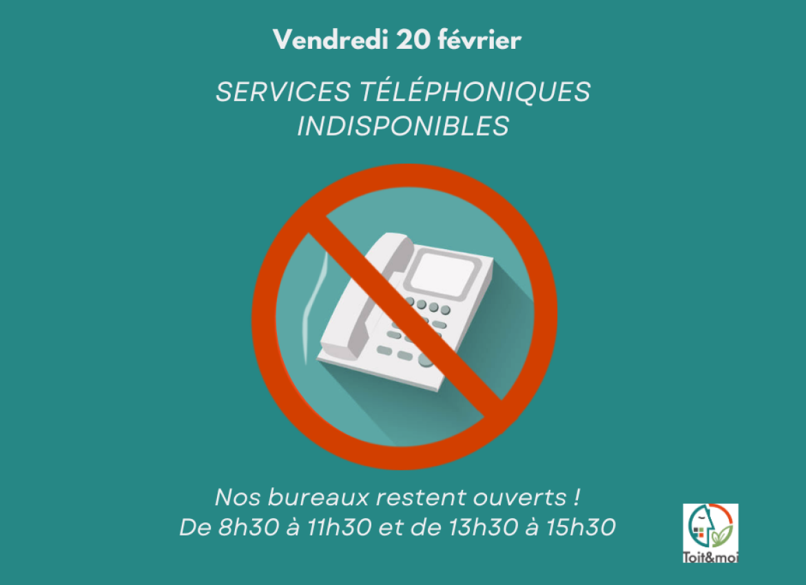 Dans le cadre de la mise en place de notre nouveau système téléphonique, nos lignes seront indisponibles de 11h à 14h, ce vendredi 20 février. Des perturbations pourront toutefois impacter le réseau tout au long de la journée. Pendant cette période : Nous vous remercions pour votre compréhension.